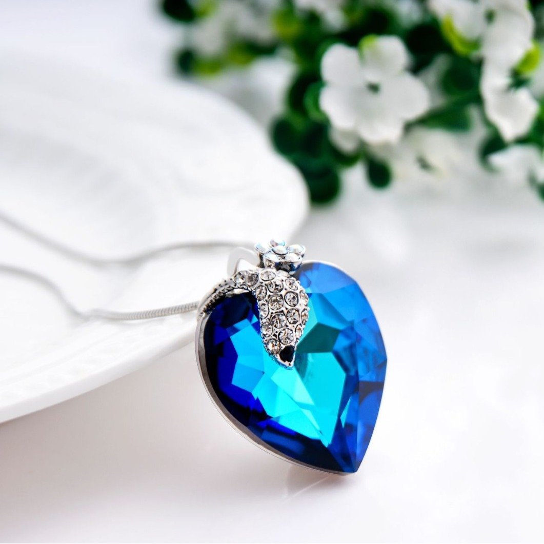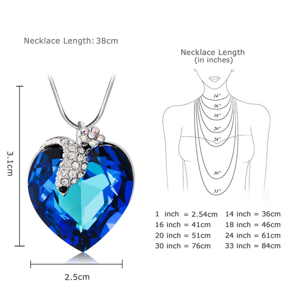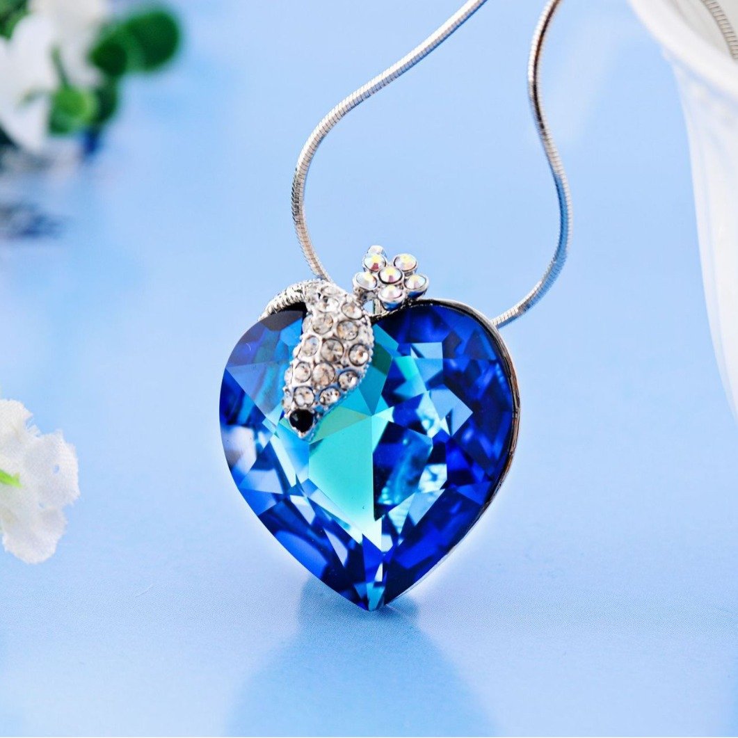 Blue heart crystal necklace with Austrian crystal collarbone chain