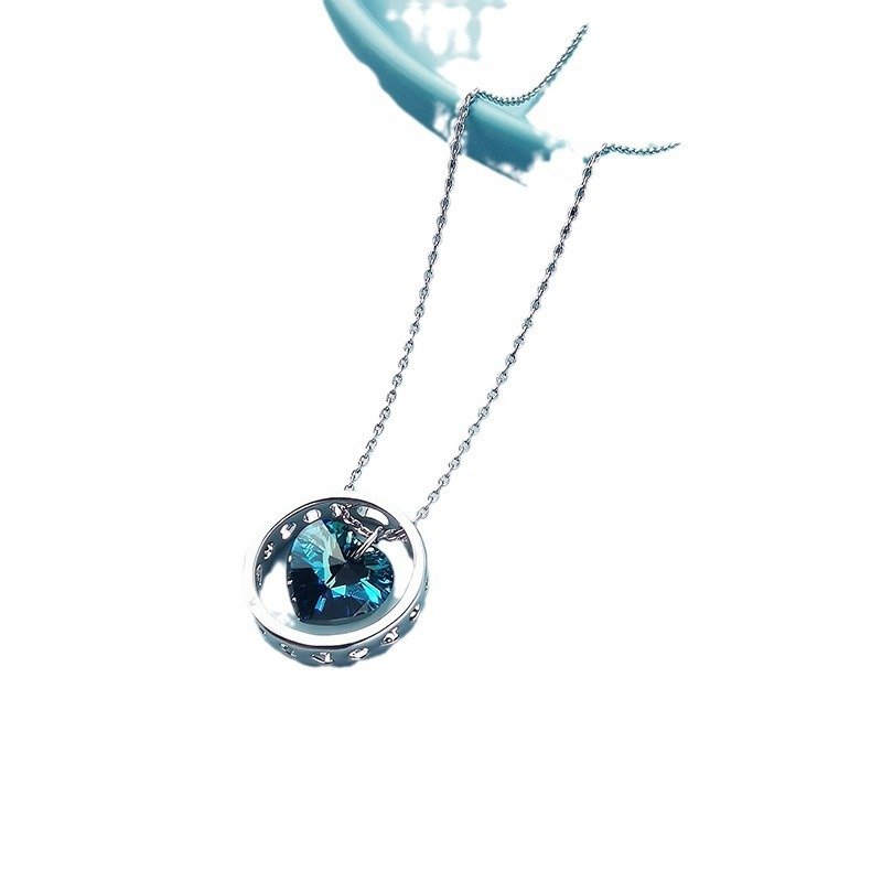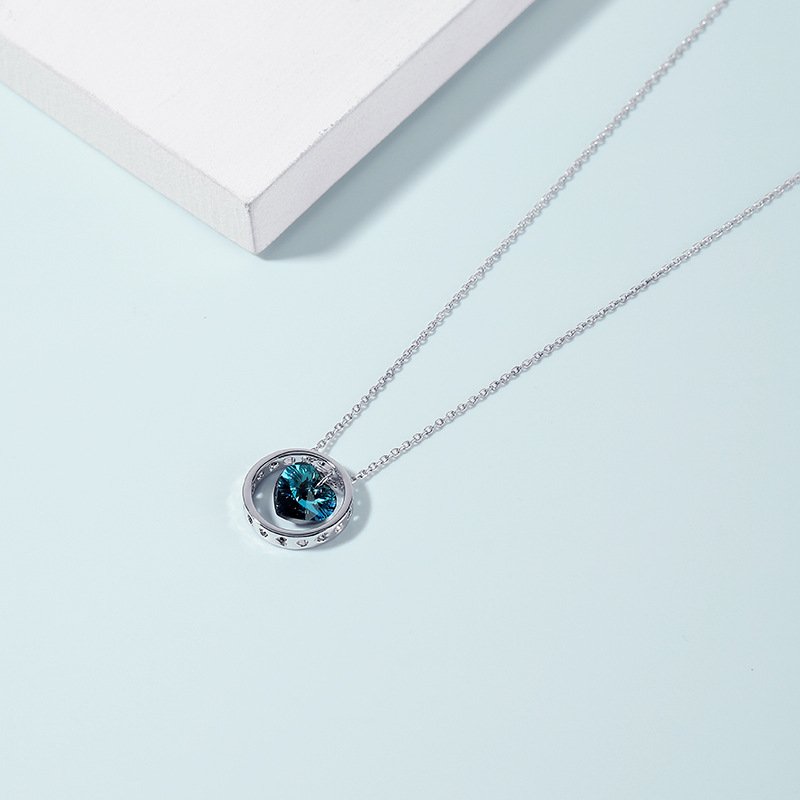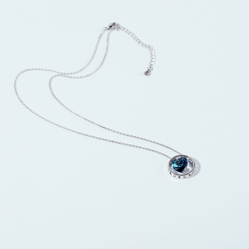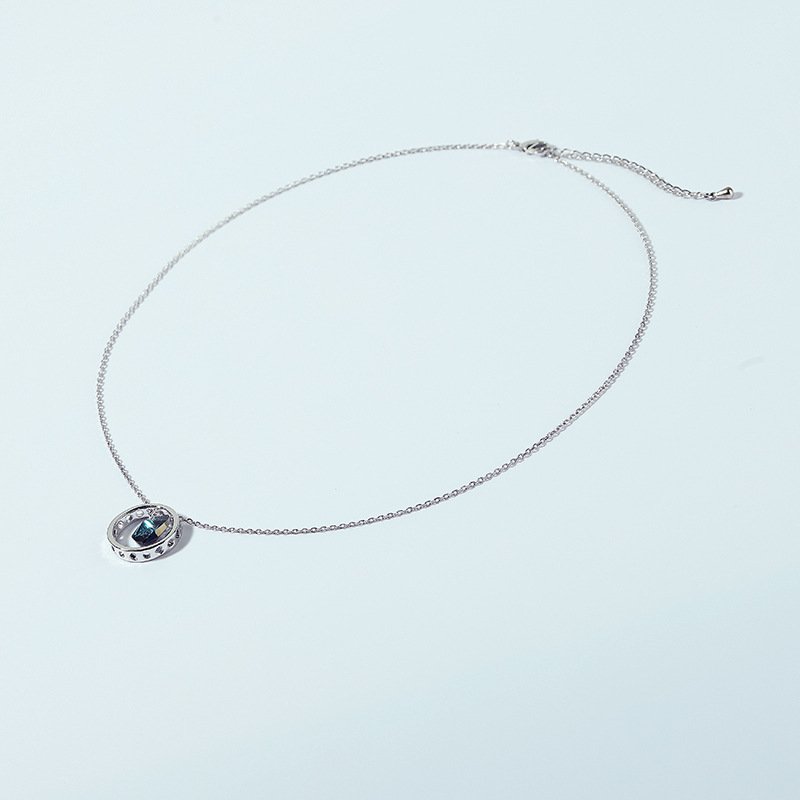 Circular Heart Crystal Necklace for Women with Austrian Crystal Collarbone Chain