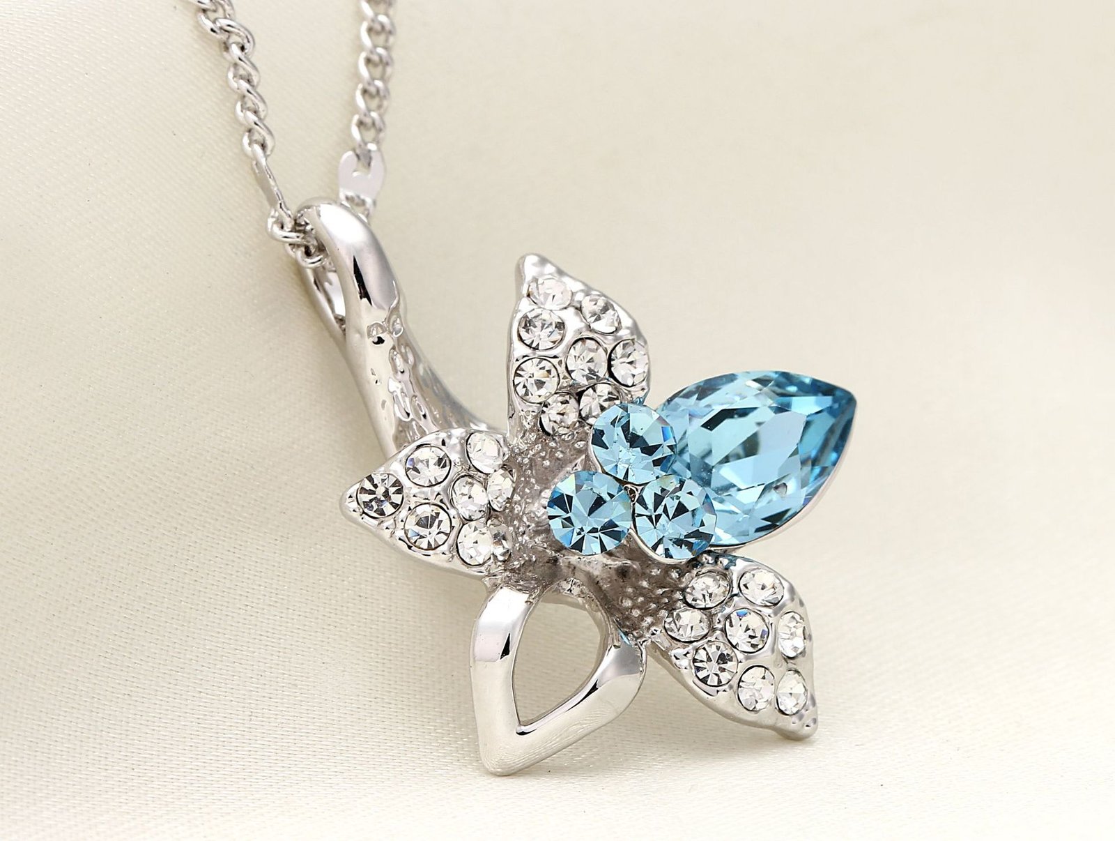 Crystal Large Flower Pendant Necklace for Women, Fashionable Short Crystal Collarbone Chain