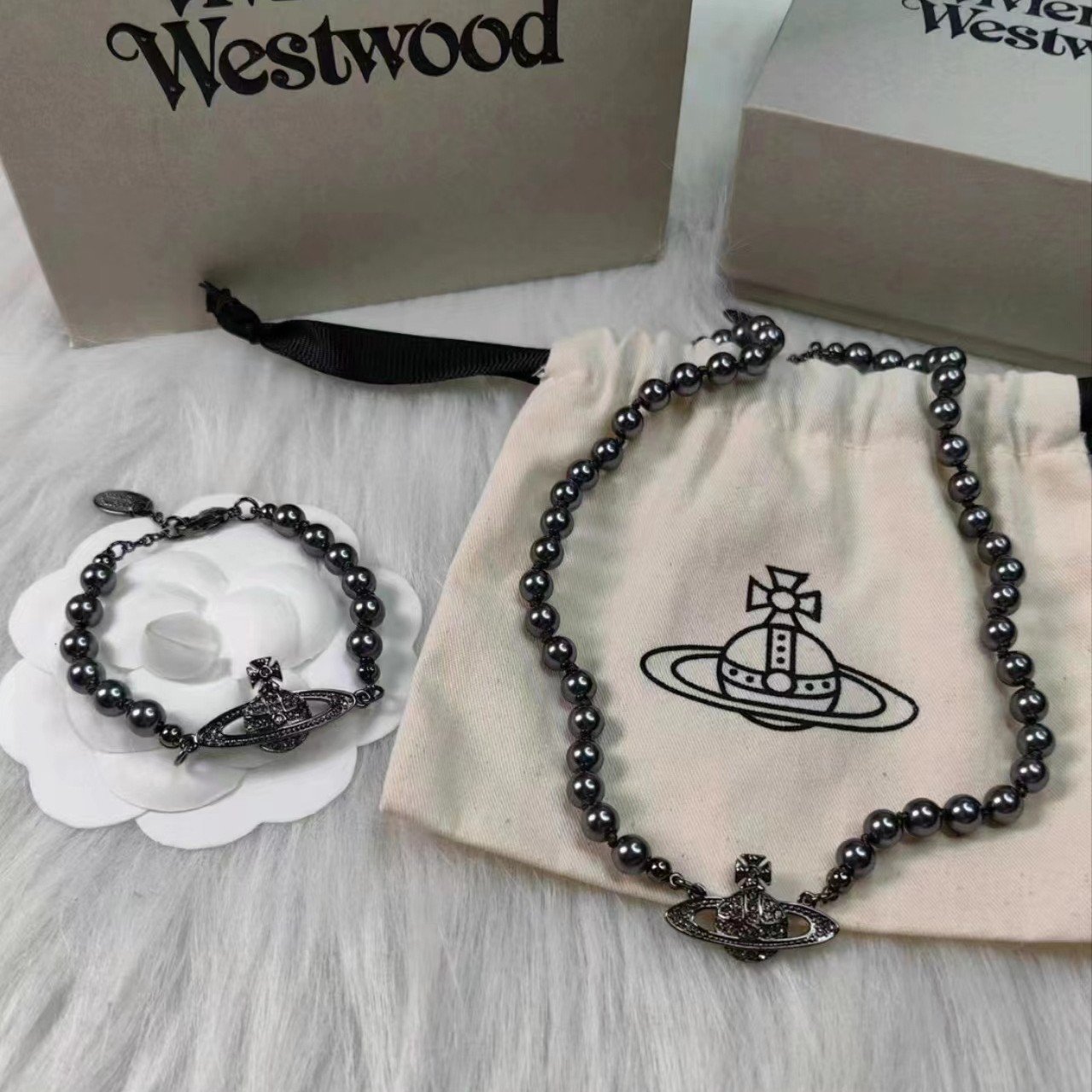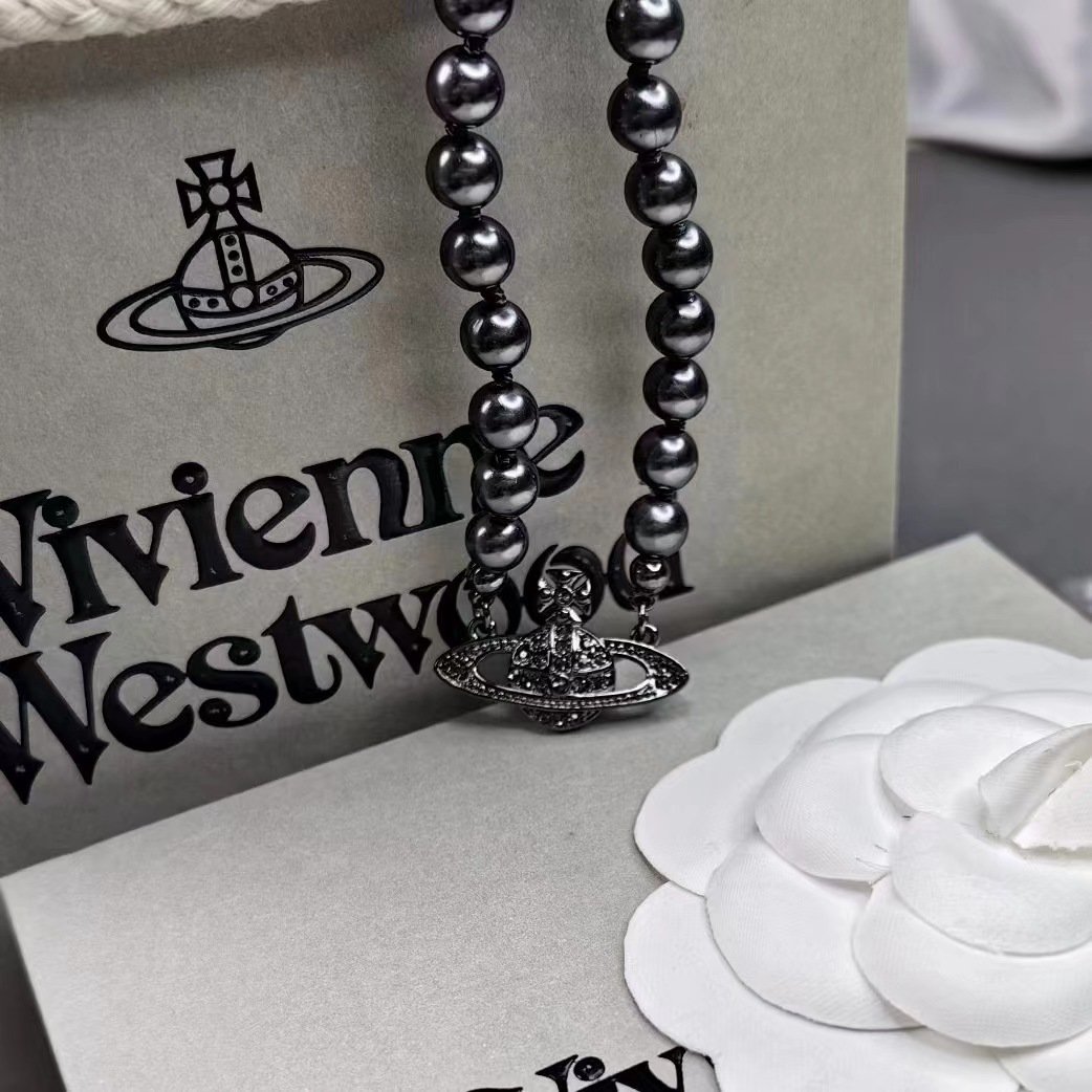 Gunblack Saturn pearl necklace for women Planet pearl clavicle chain