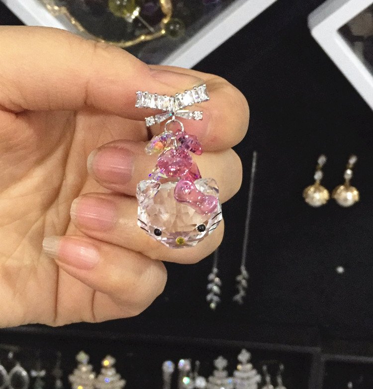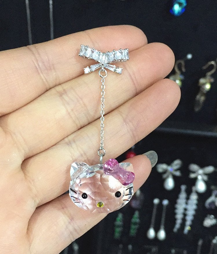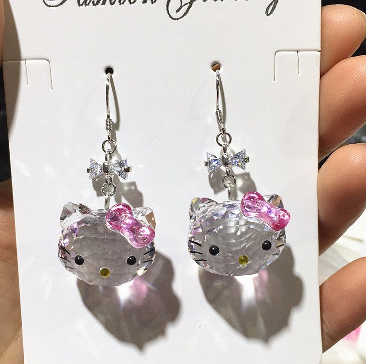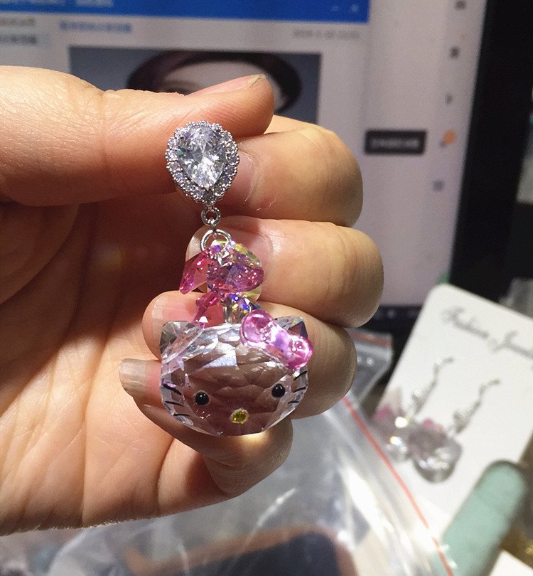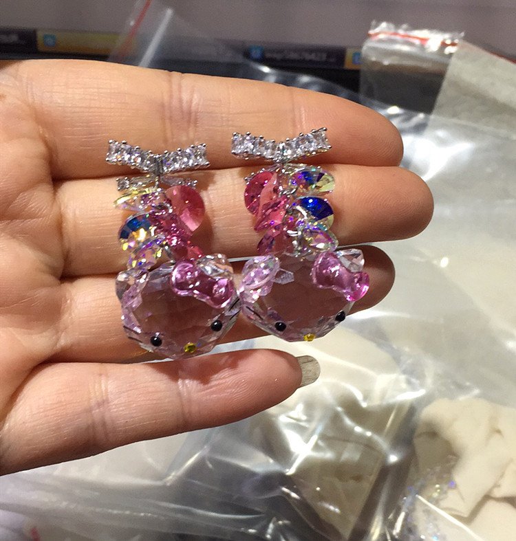 KT cat ear earrings cute fresh sweet girlish earrings student silver needle Austrian crystals …