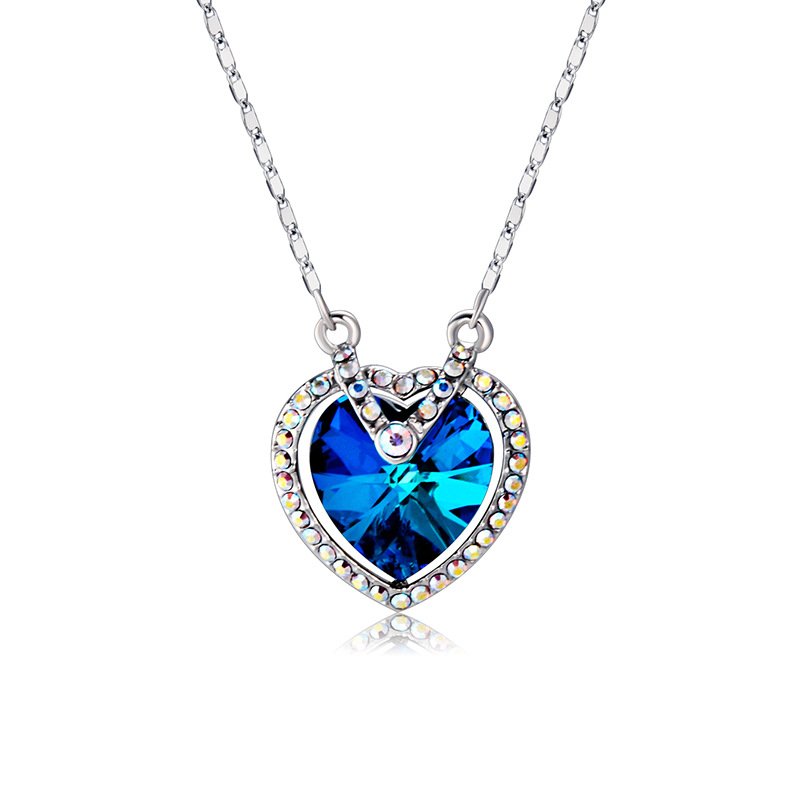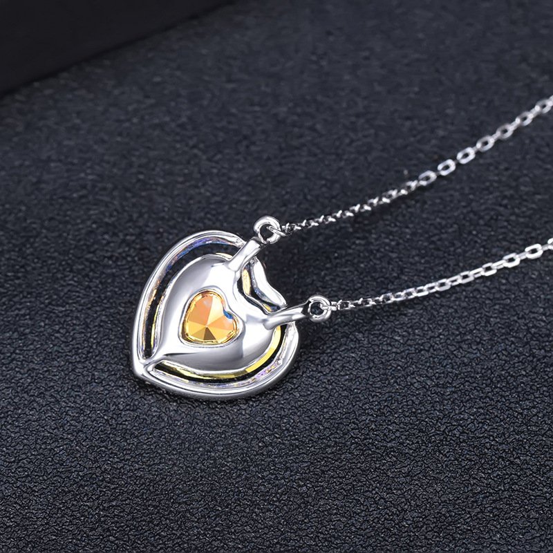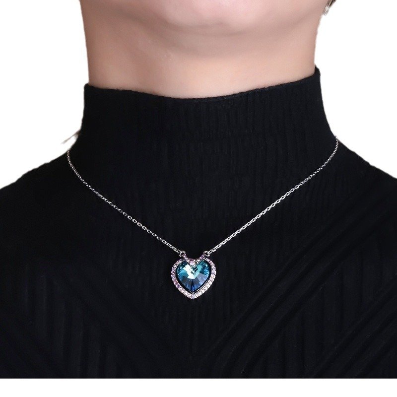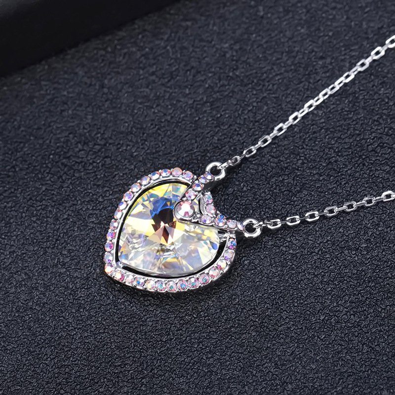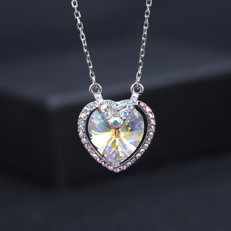 Loving Heart Crystal Pendant Necklace with Micro Pave Fully Diamond Collarbone Chain
