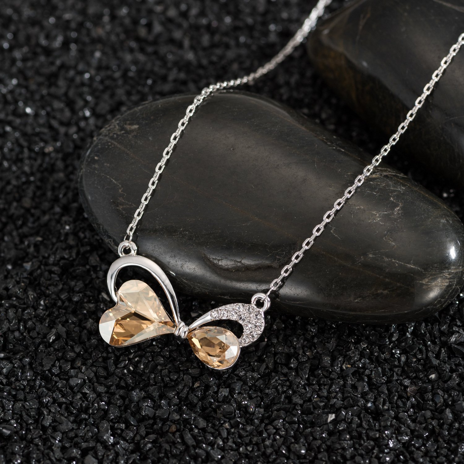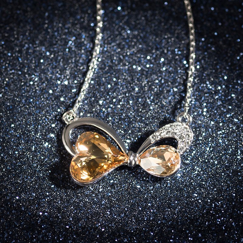 Micro-inlaid bow crystal necklace for women