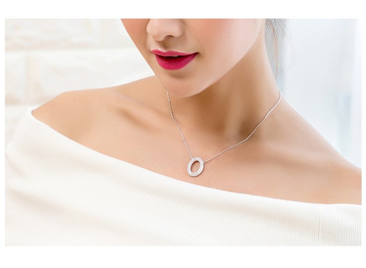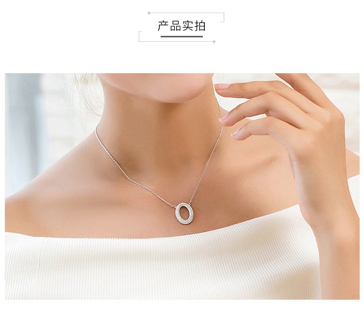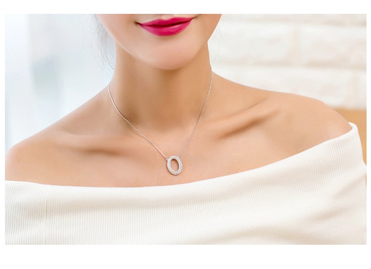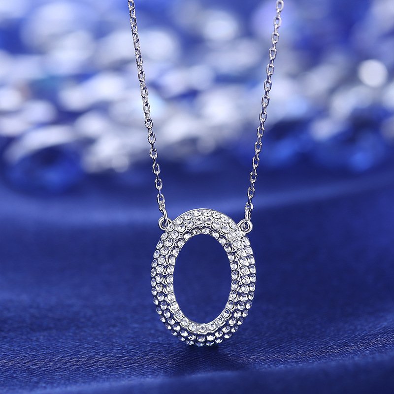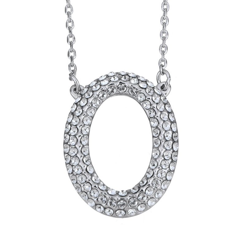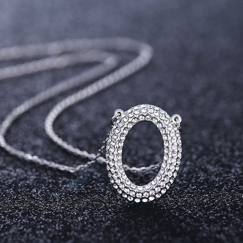 O-shaped full diamond necklace with micro-paved letter pendant