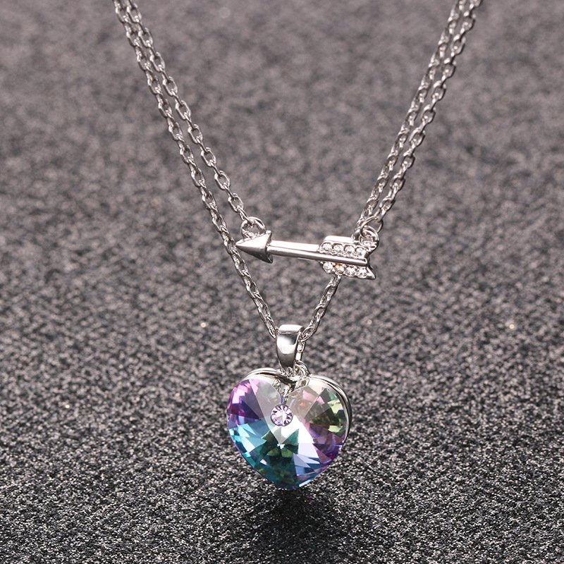 Purple Light Love Crystal Necklace for Women Cupid’s Arrow Double-layer Pendant Collarbone Chain