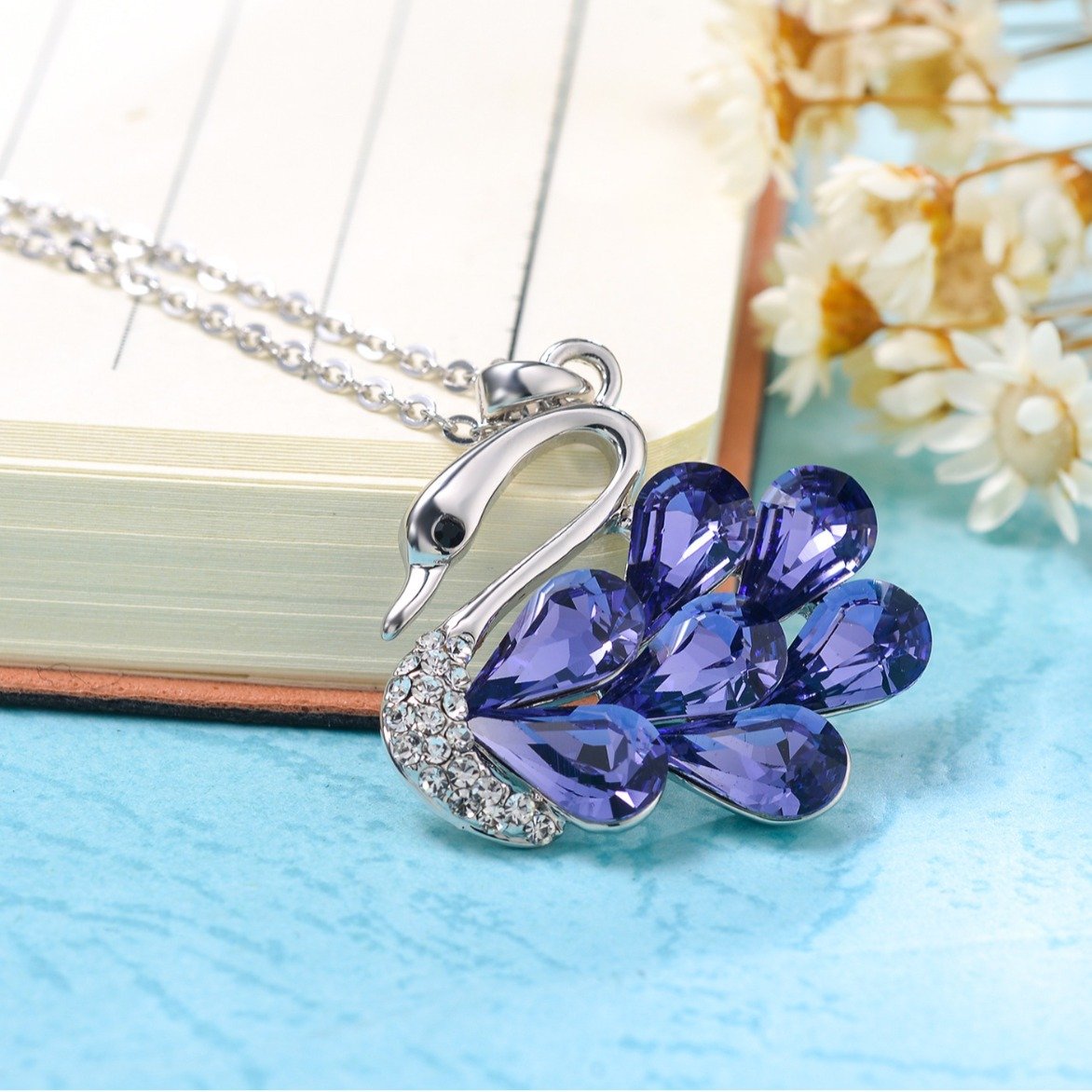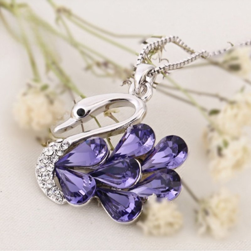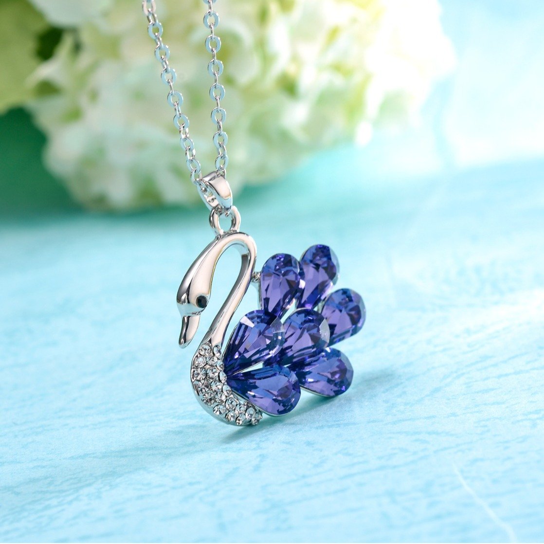 Purple Swan Crystal Necklace for Women Swan Pendant Collarbone Chain