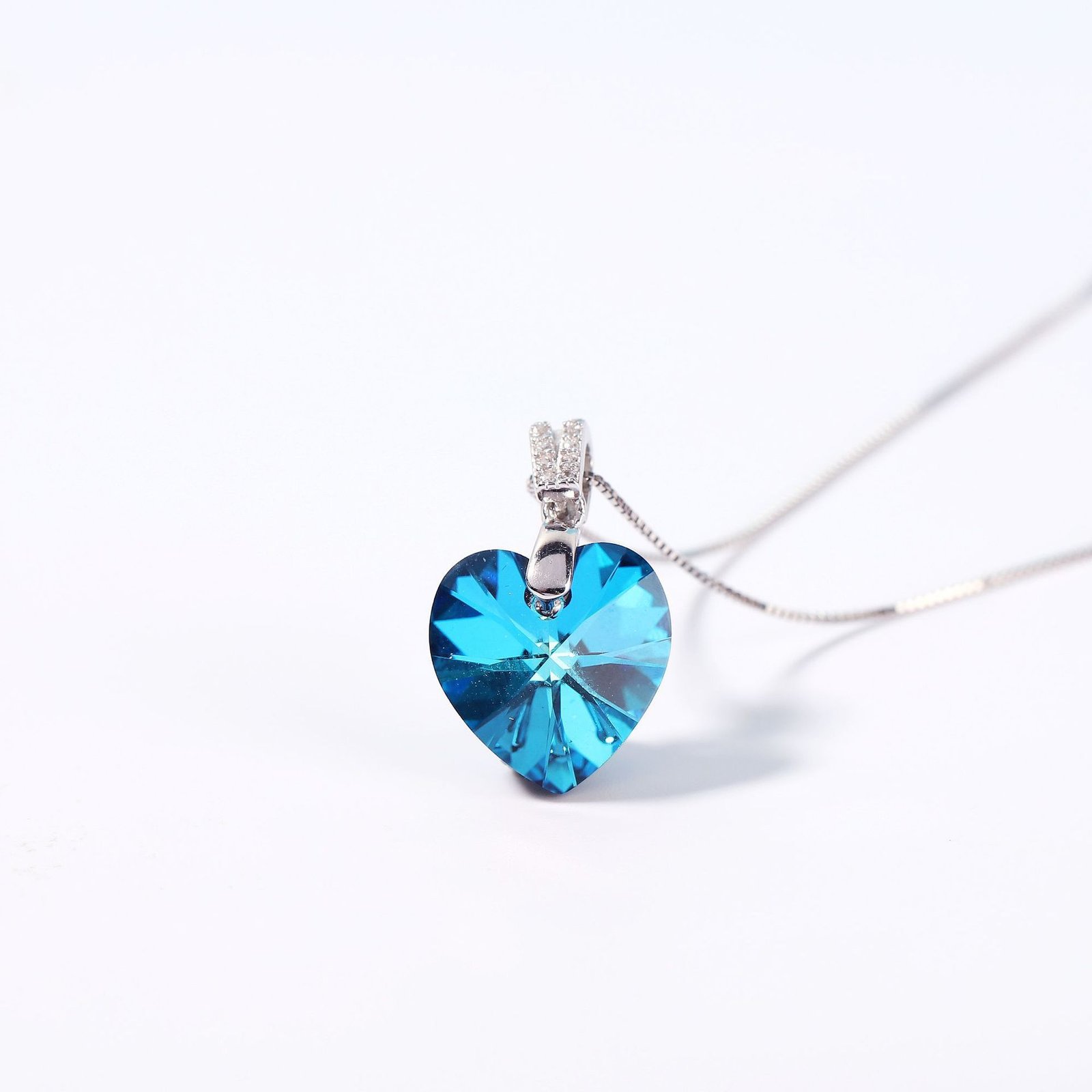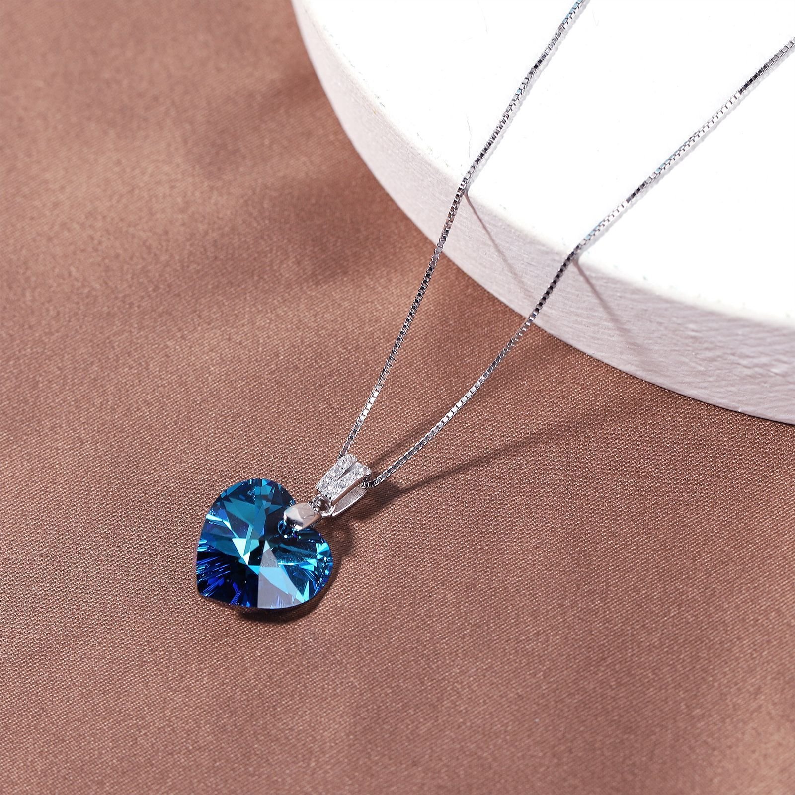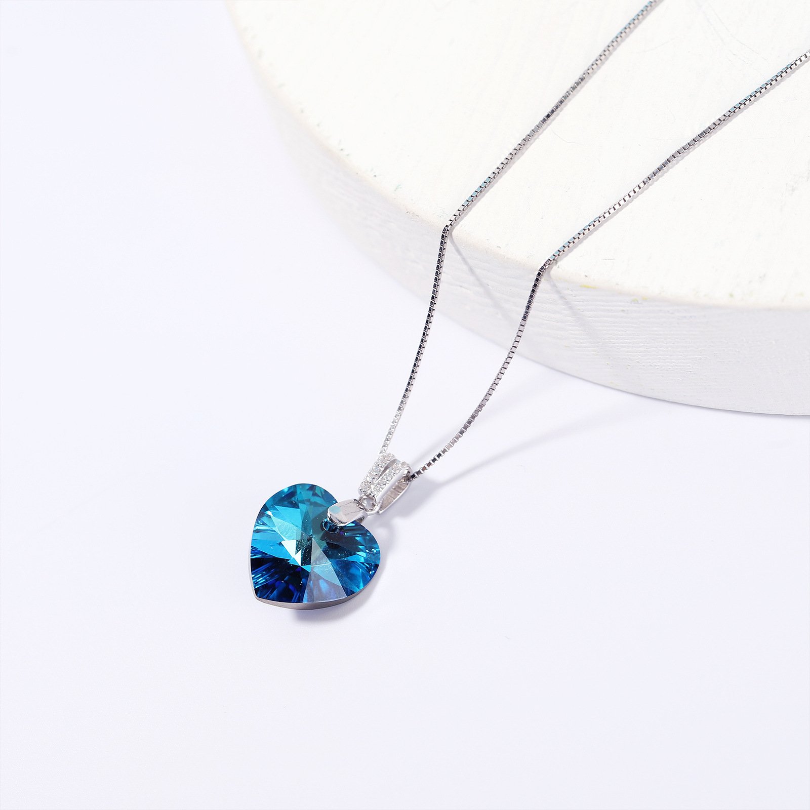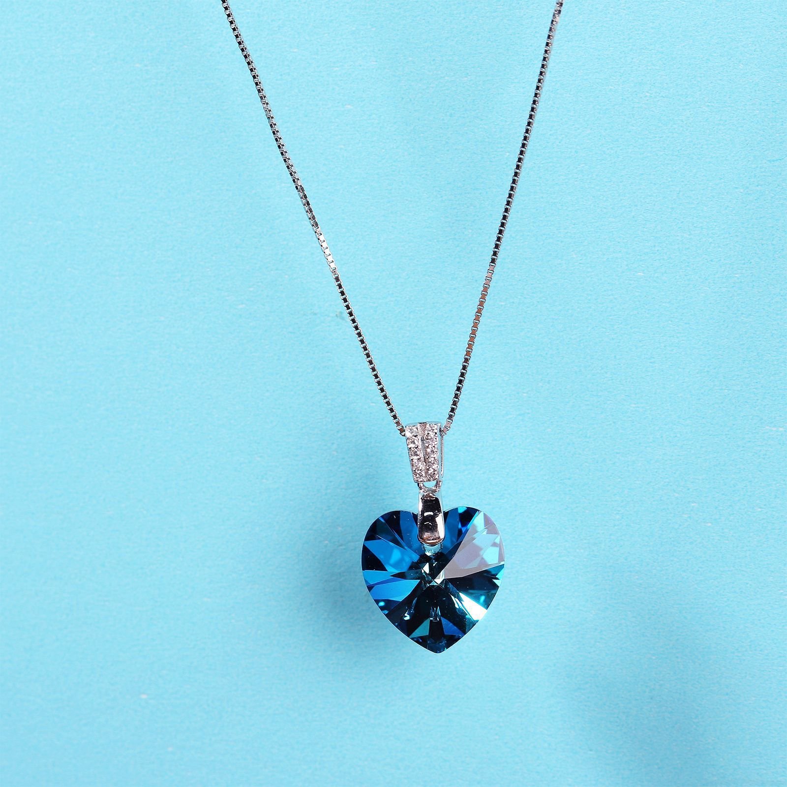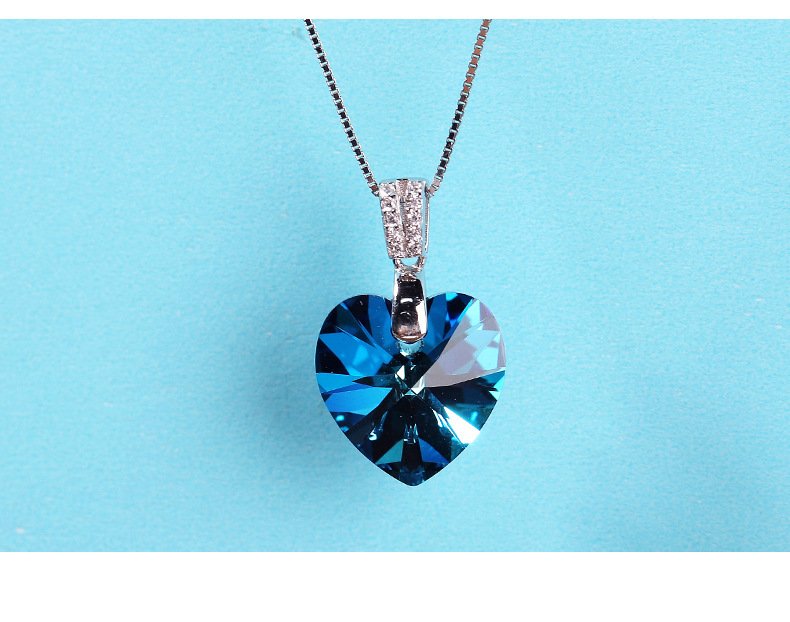 s925 sterling silver Ocean’s Heart necklace for women, heart-shaped crystal clavicle chain