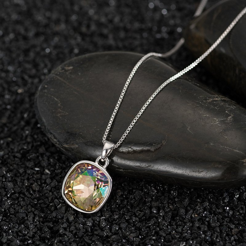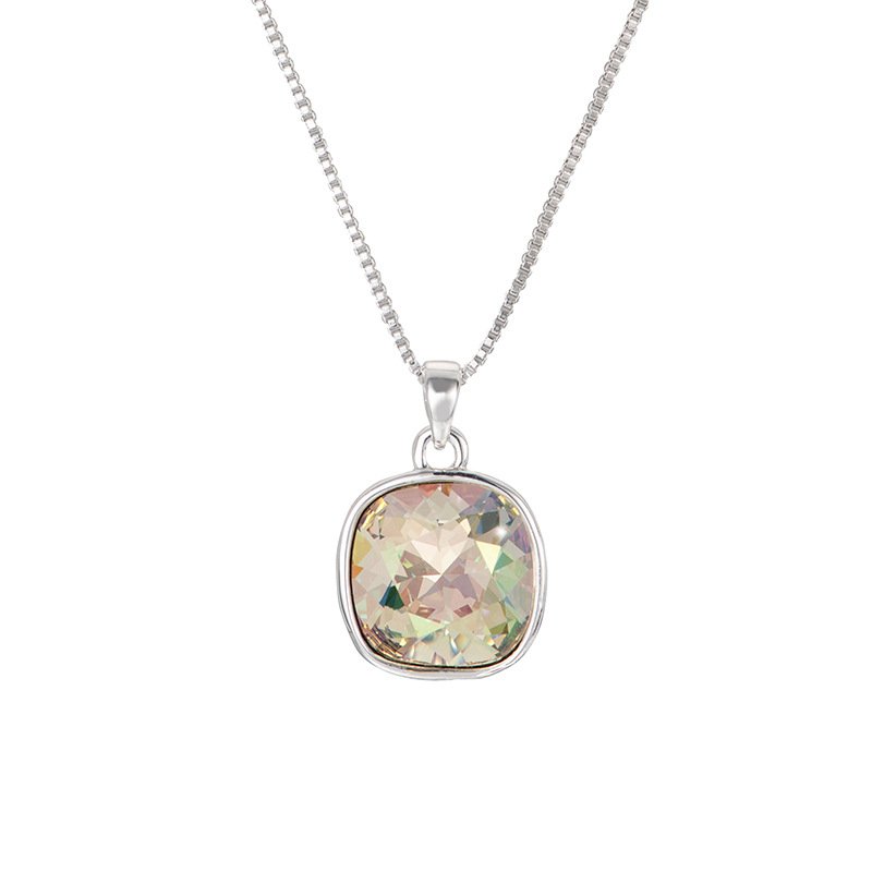 Small square crystal necklace for women, clavicle chain with small cube pendant